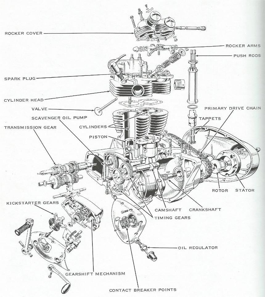Двигатель Триумф Бонневиль в разрезе