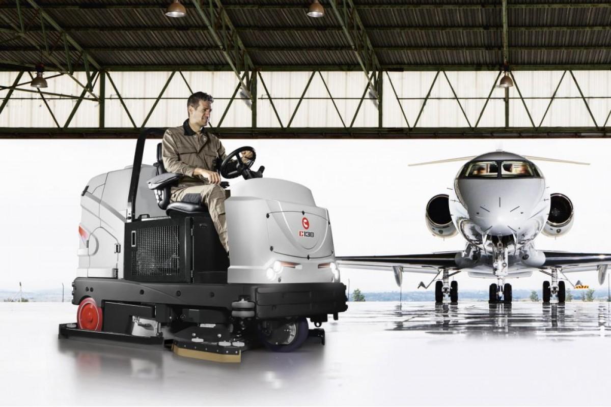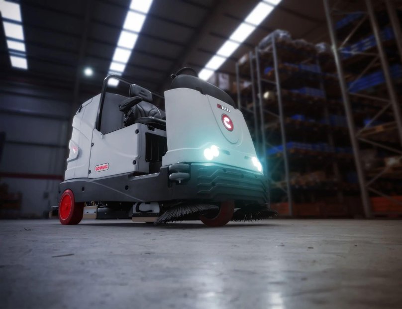 Мойка полов на складе самоходной поломоечной машине