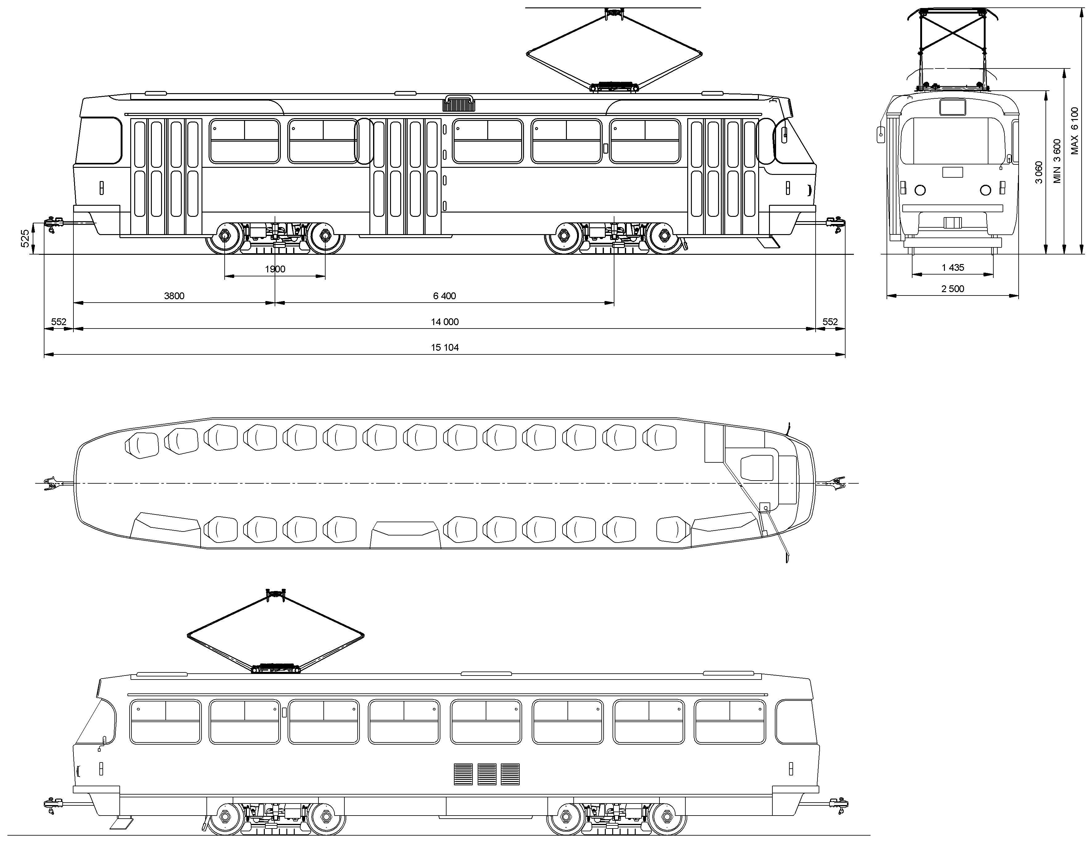 Чертеж трамвая Татра т6б5