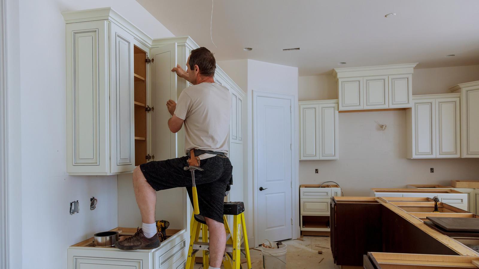 Человек красит кухню