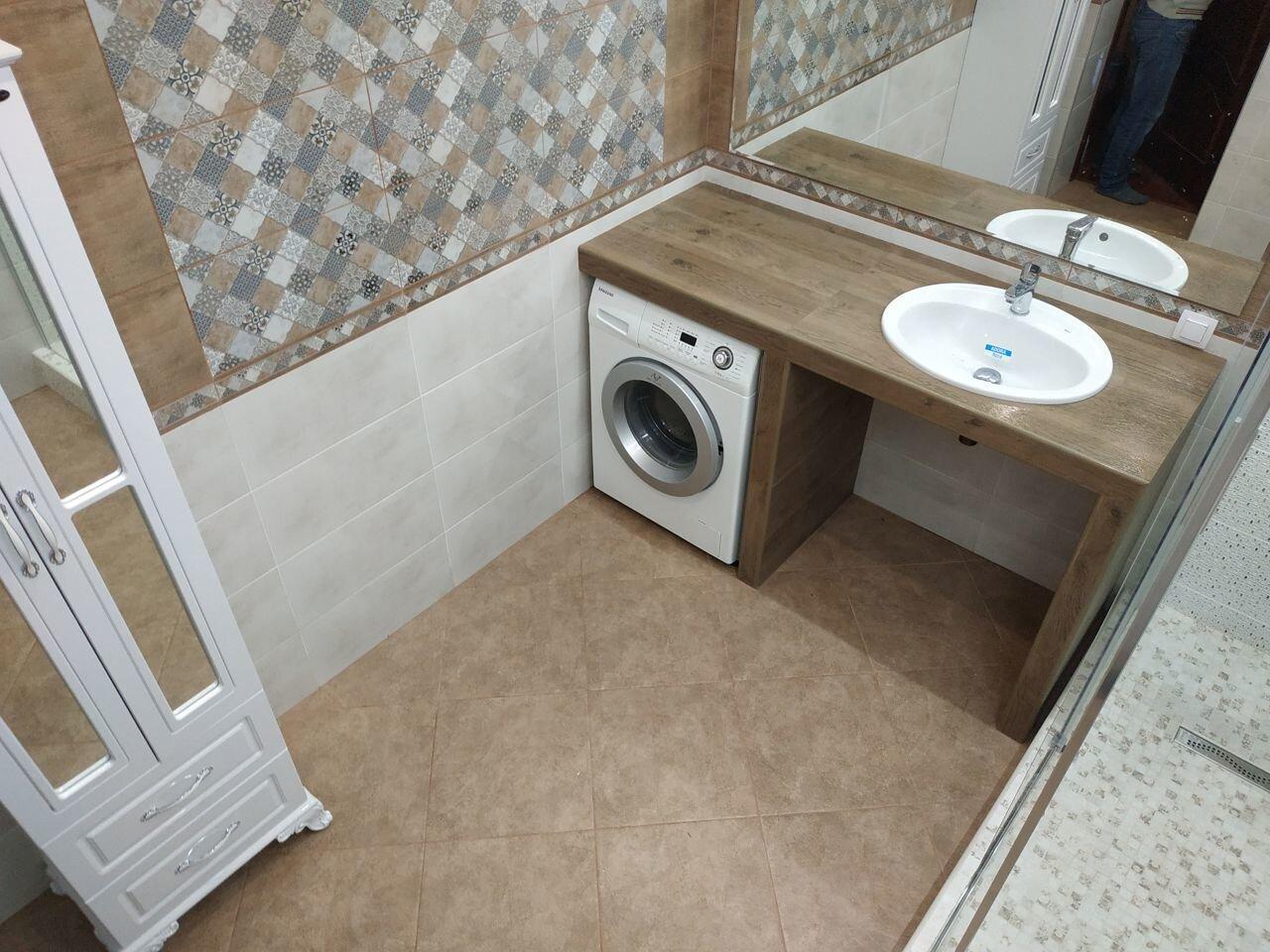 Столешница из керамогранита в ванную под раковину и стиральную