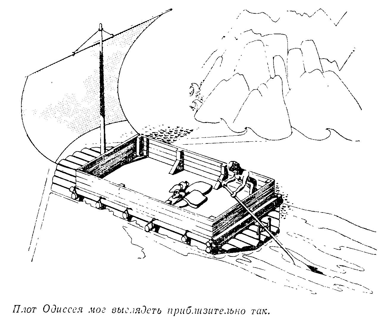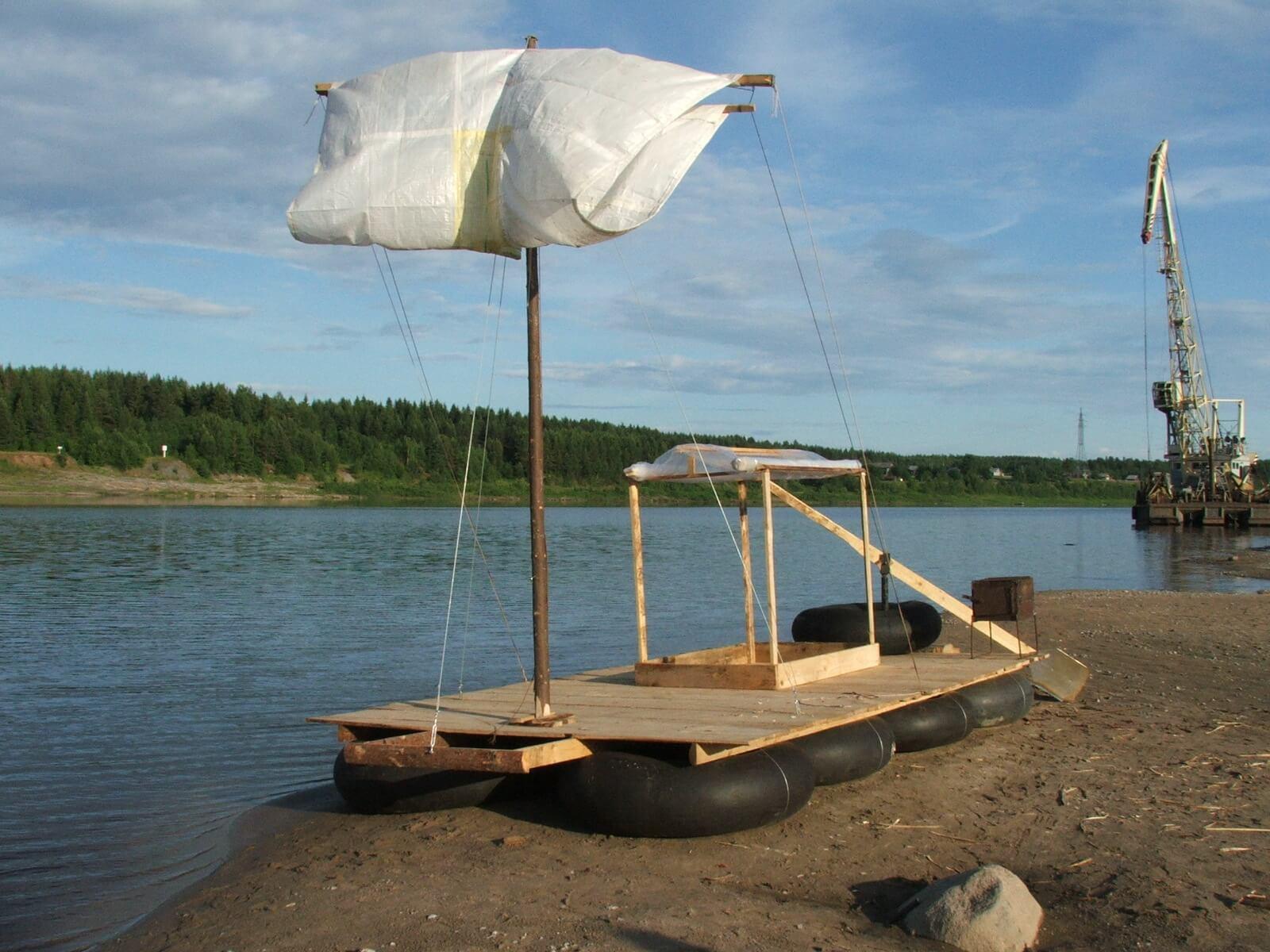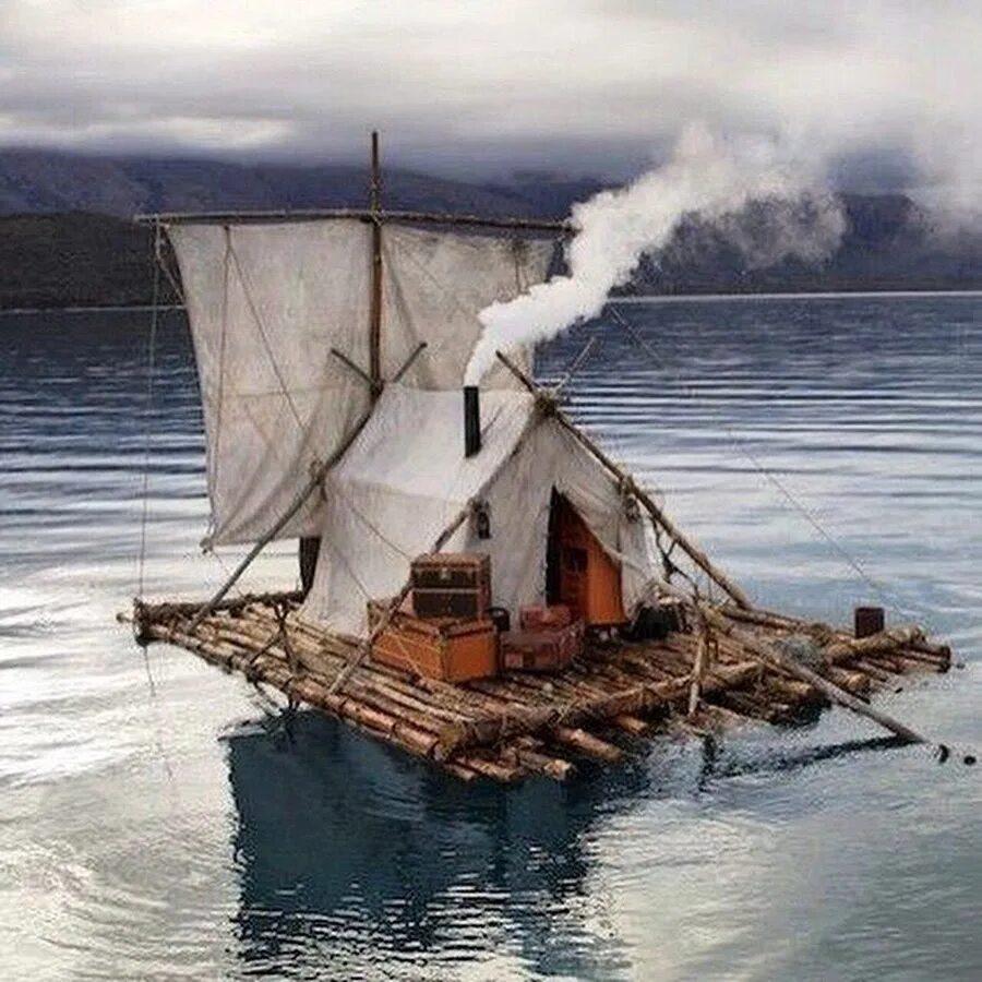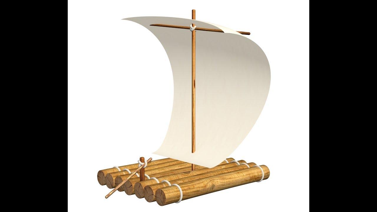Деревянный плот с парусом