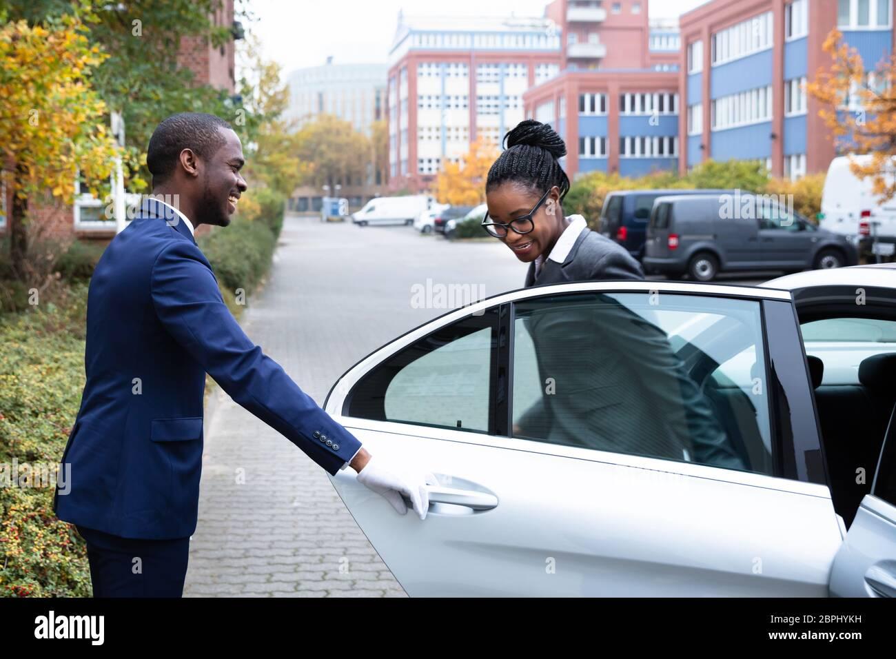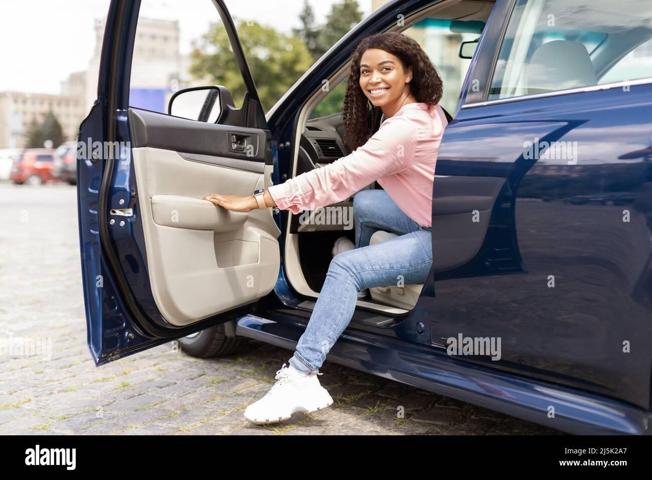 Девушка выходит из машины