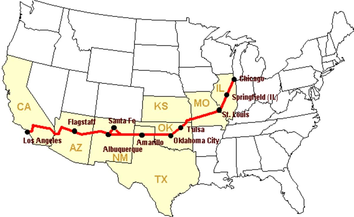 Дорога 66 в США на карте