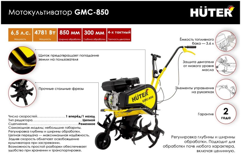 Мотокультиватор GMC-850 Huter 70/5/24