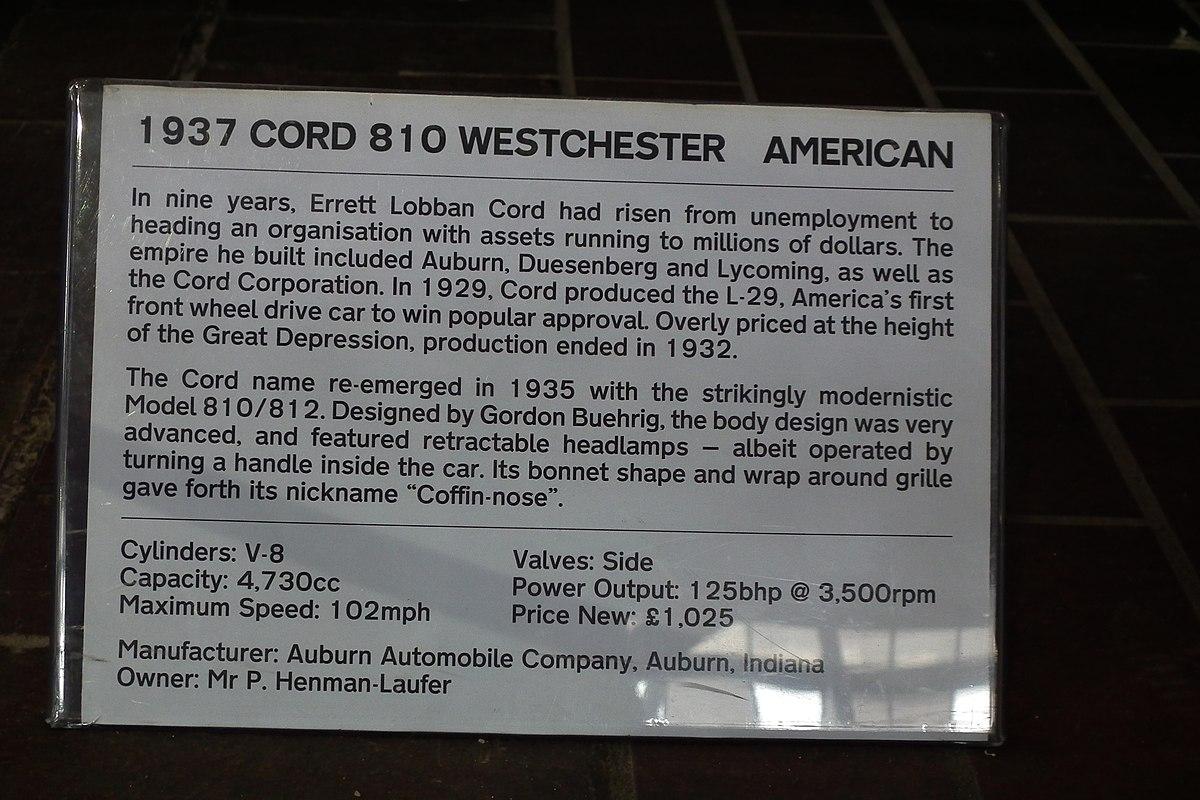 Корд 810 автомобиль