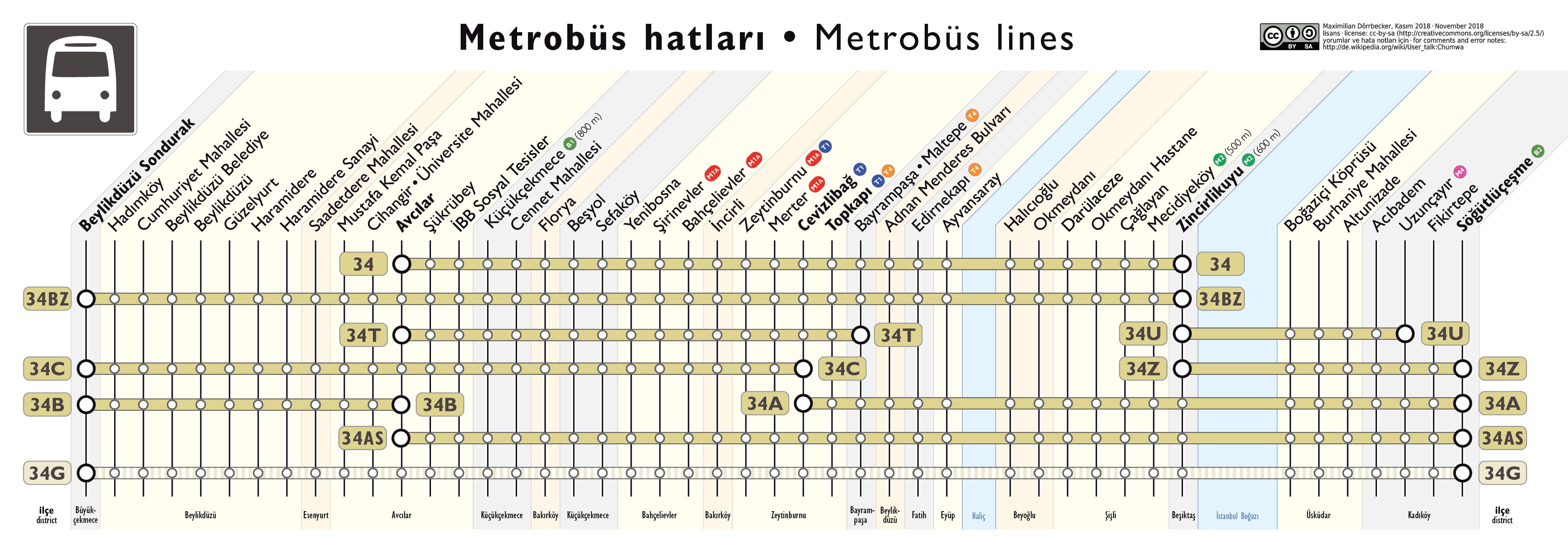 Карта метробуса в Стамбуле