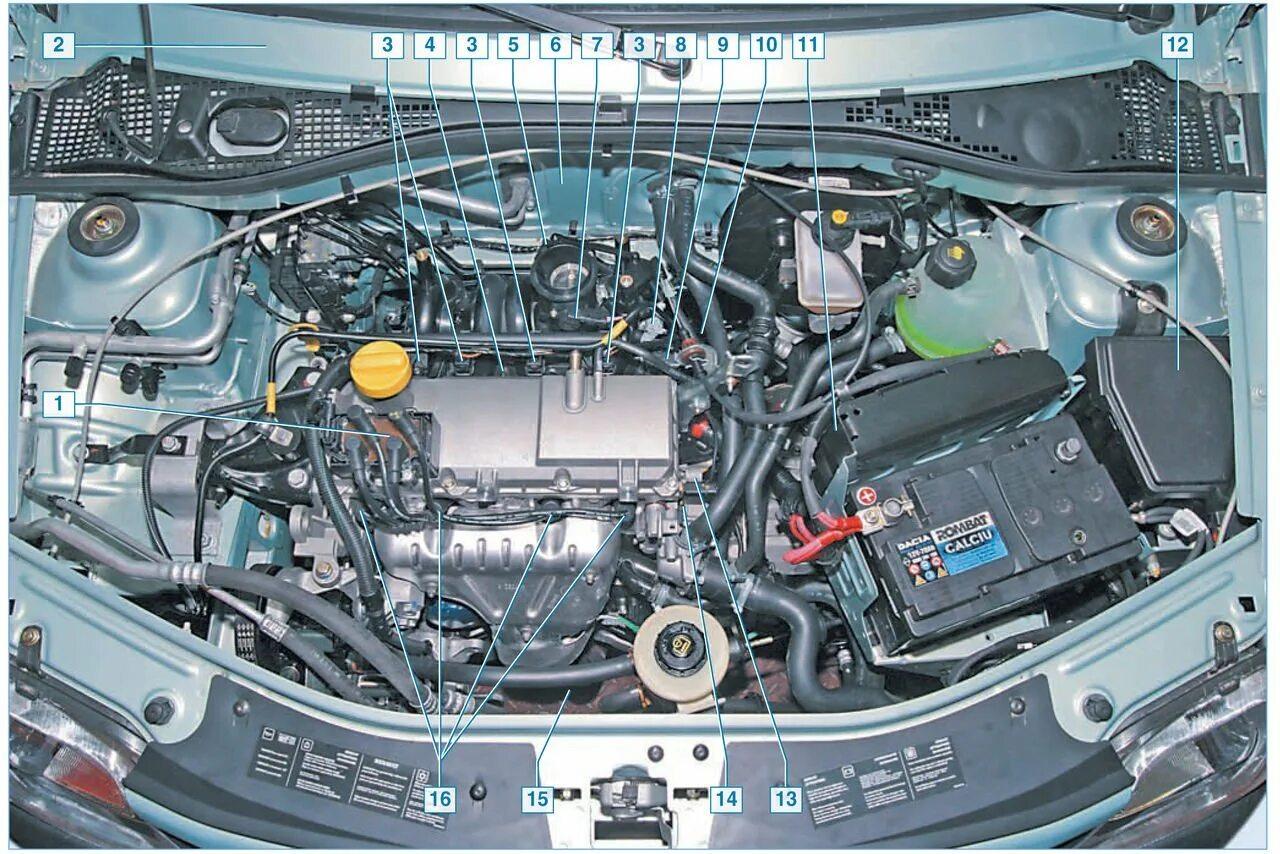 Моторный отсек Рено Логан 1.4