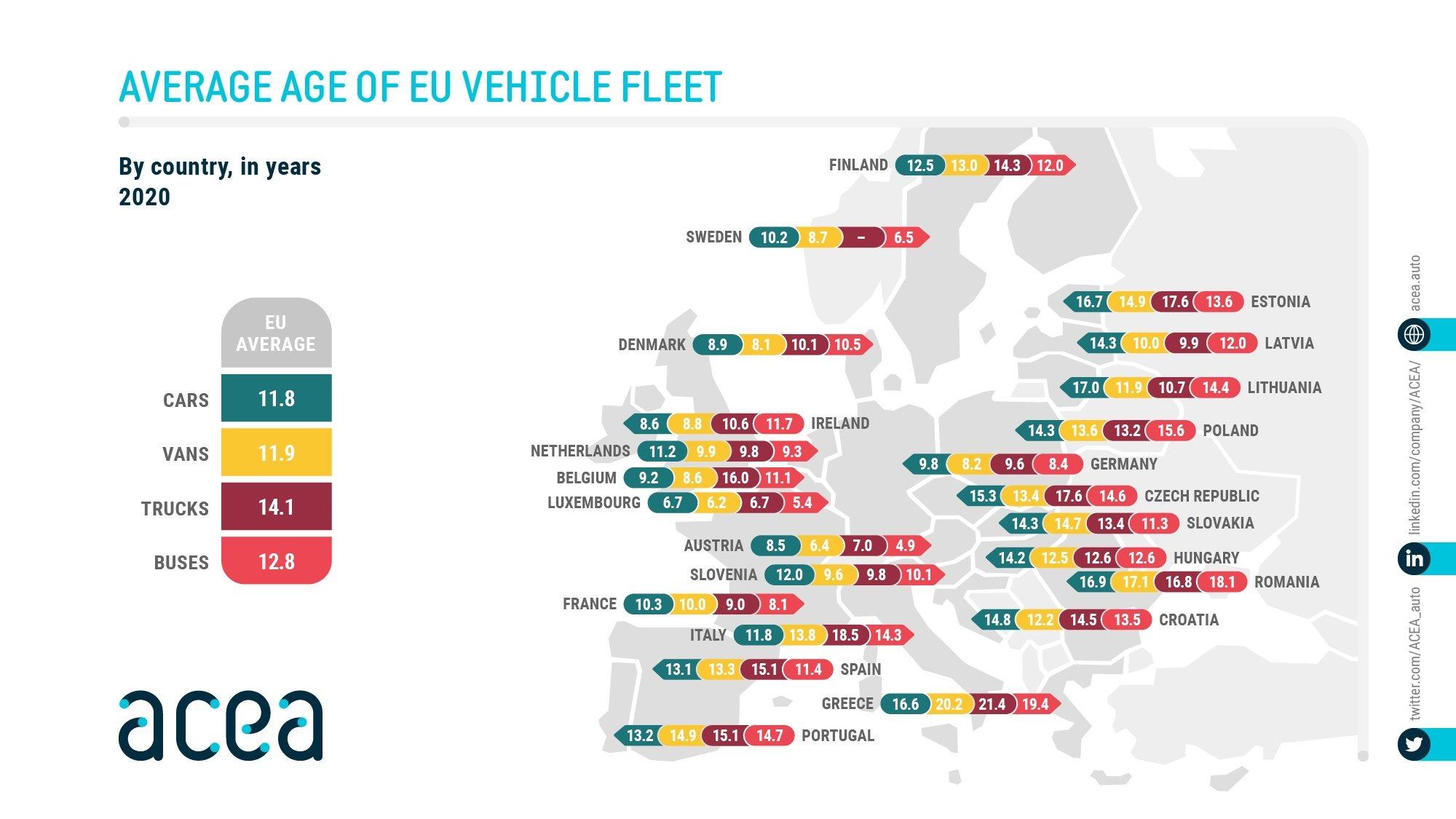 Средний Возраст автомобилей в Европе