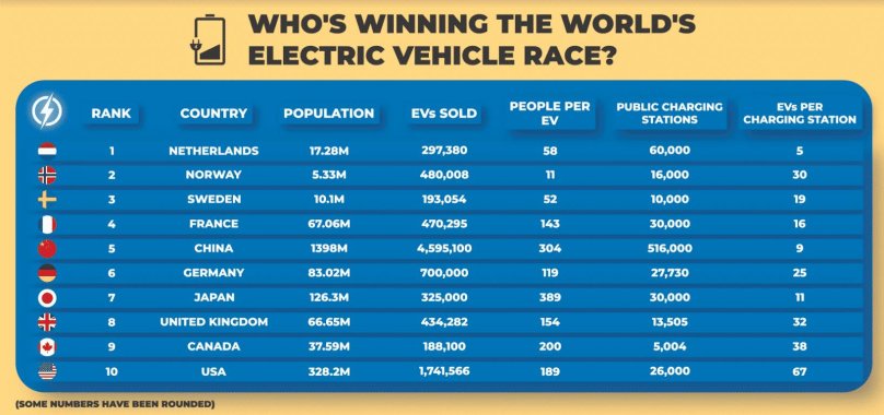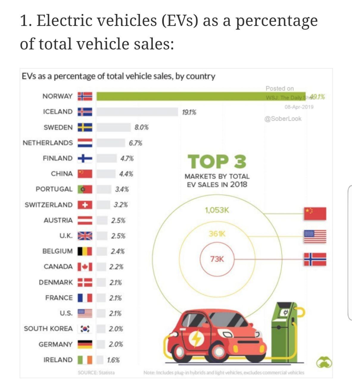Фото Процент электромобилей по странам