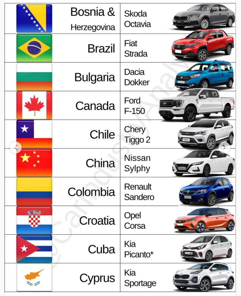 Самые популярные машины в разных странах
