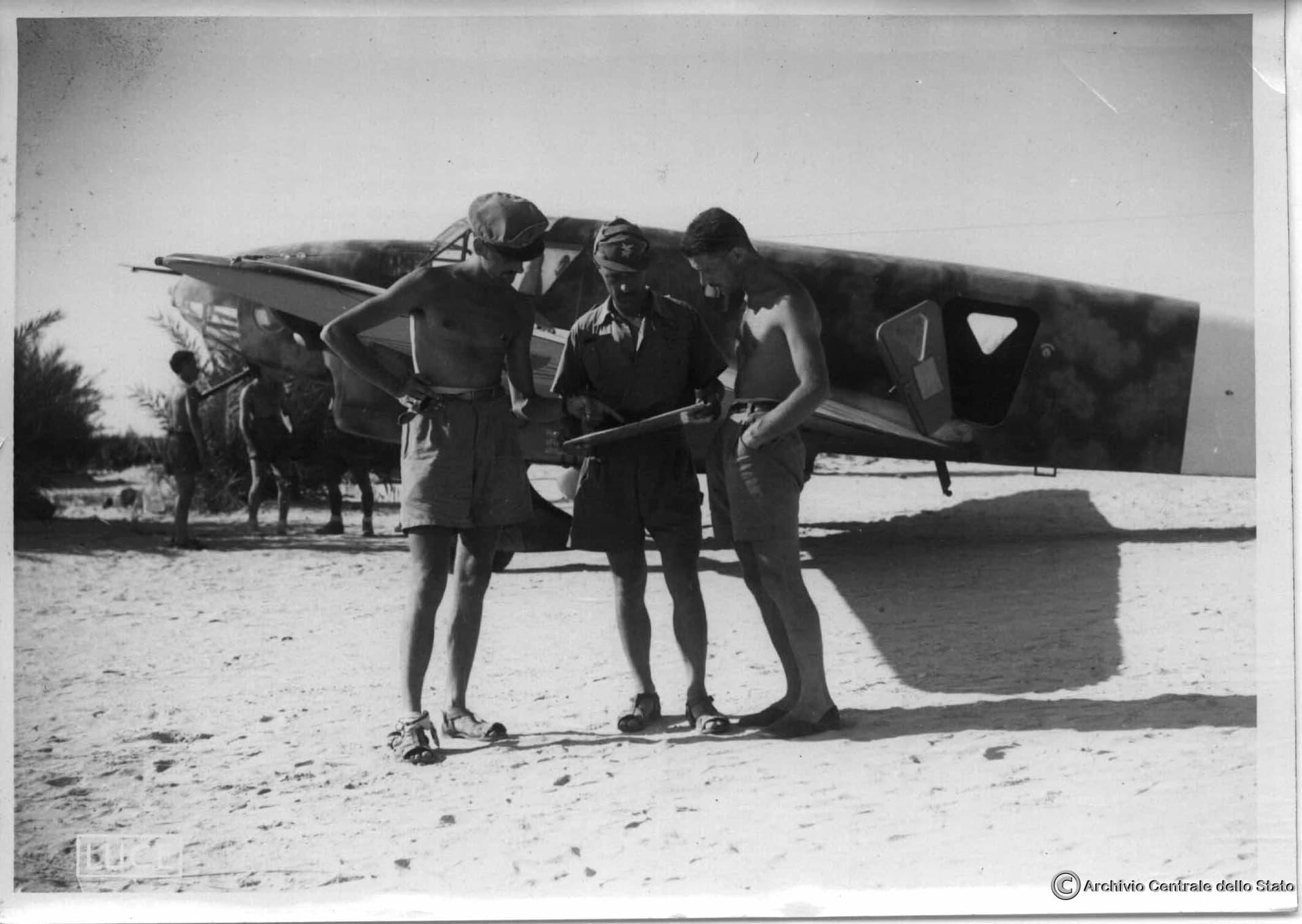 Итальянский Авиатор на фоне истребителя в Северной Африке