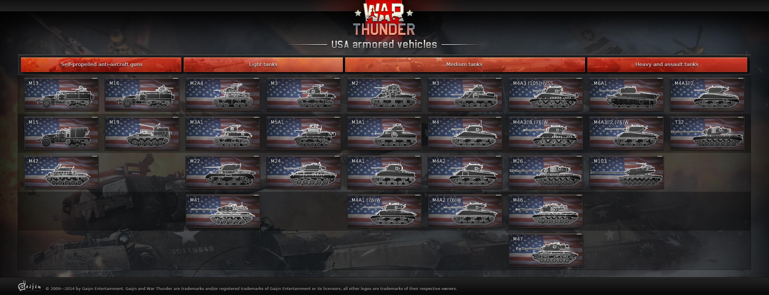 Var Thunder American branch of tanks