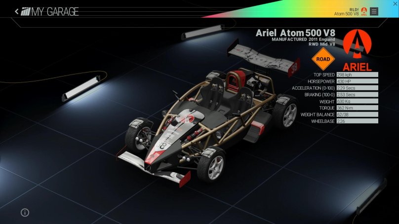 Ariel Atom 500 v8 dashboard