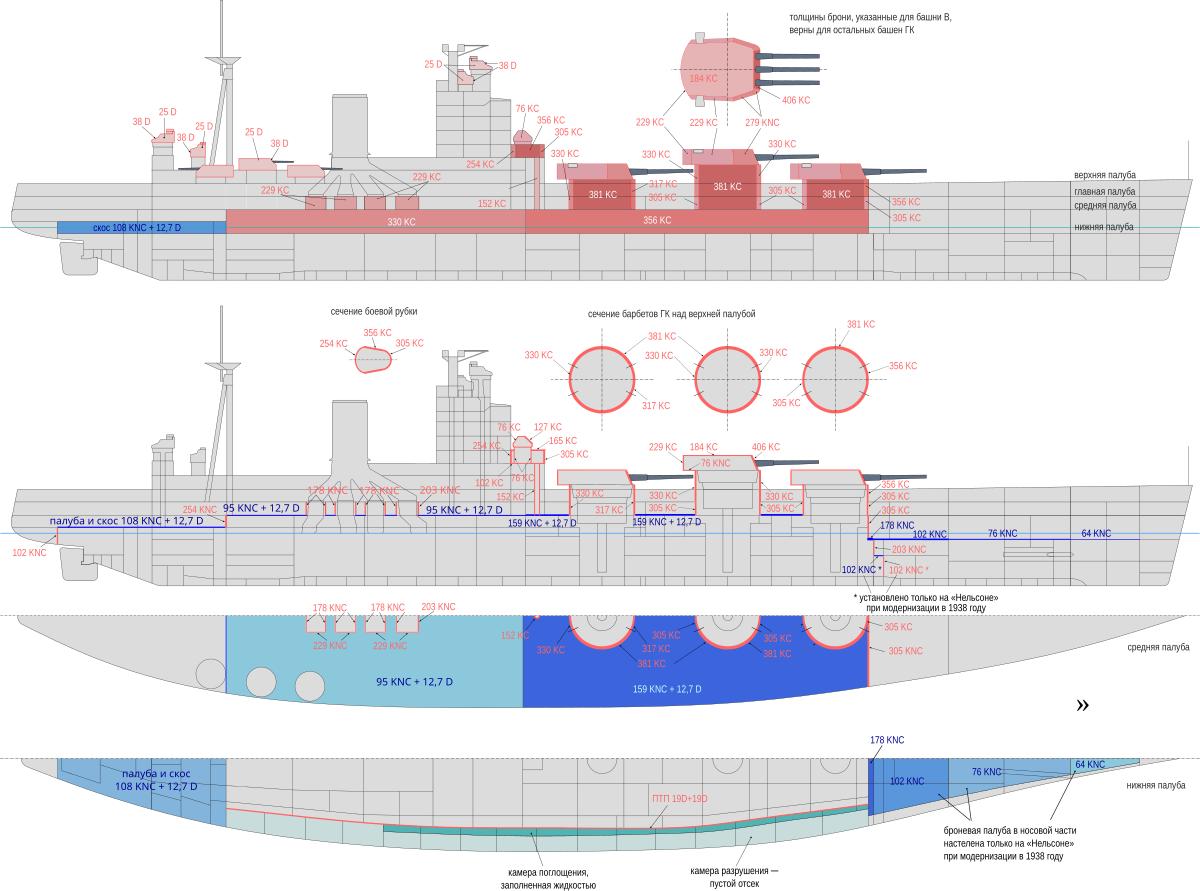 Линкор Нельсон схема бронирования