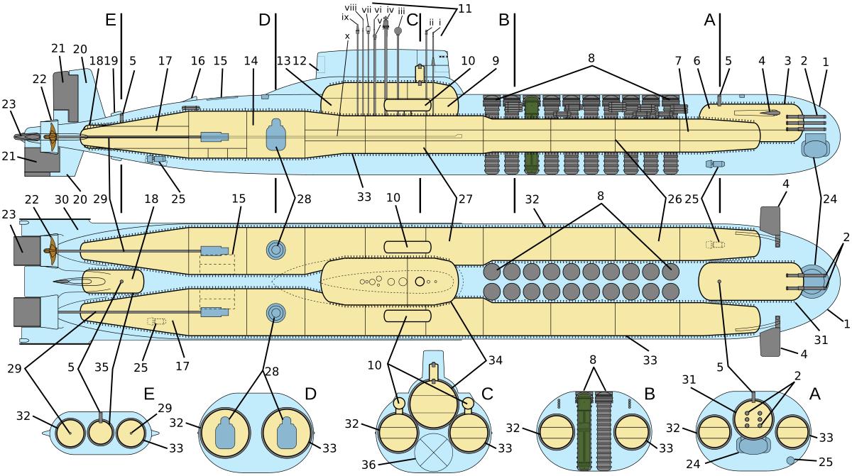 Подводные лодки проекта 941 акула схема