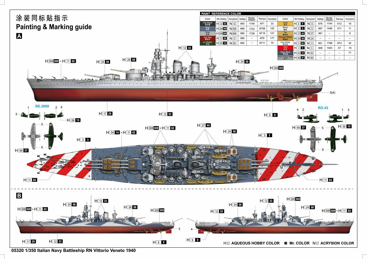 05320 Trumpeter итальянский линкор RN Vittorio Veneto 1940 1/350