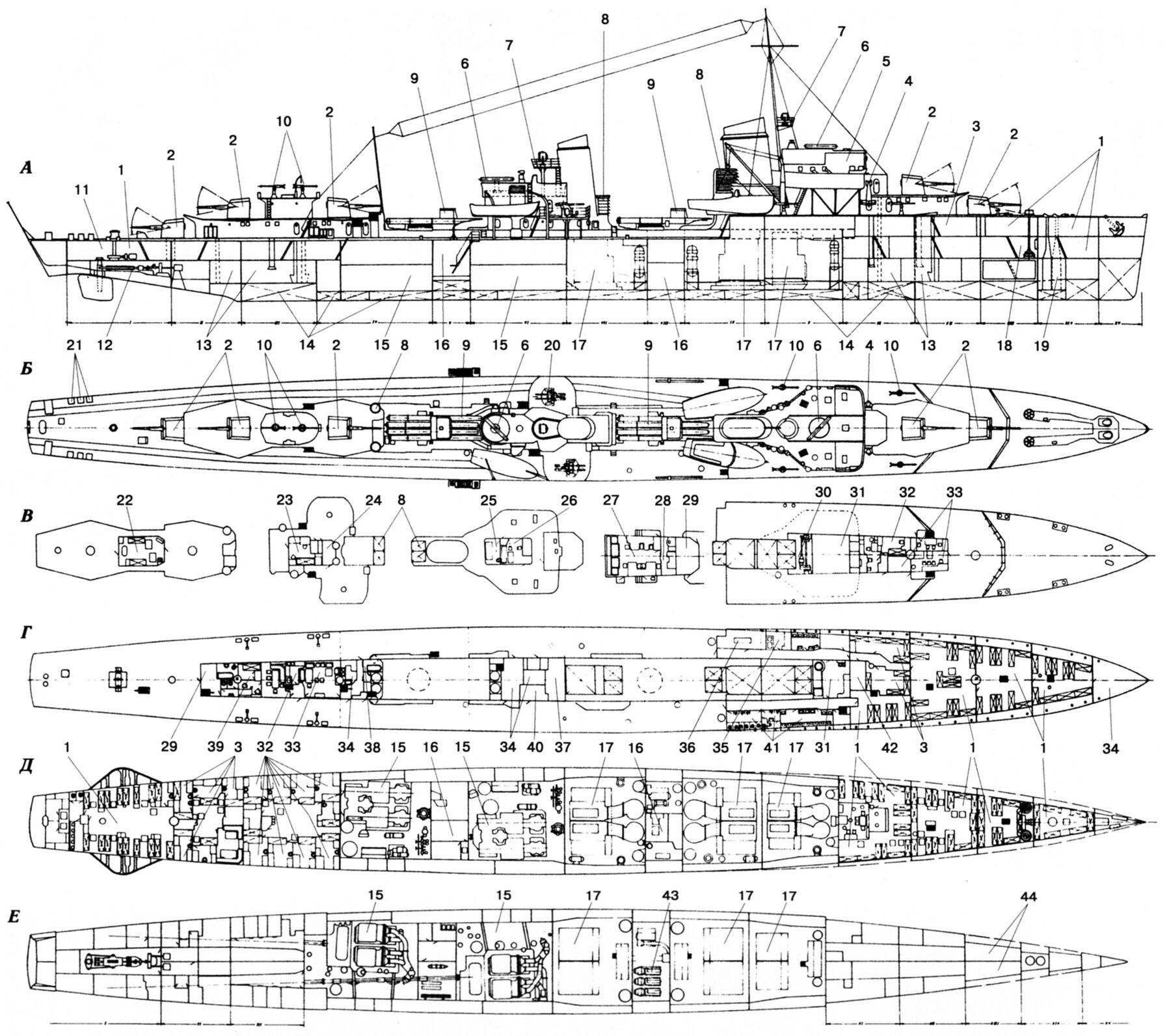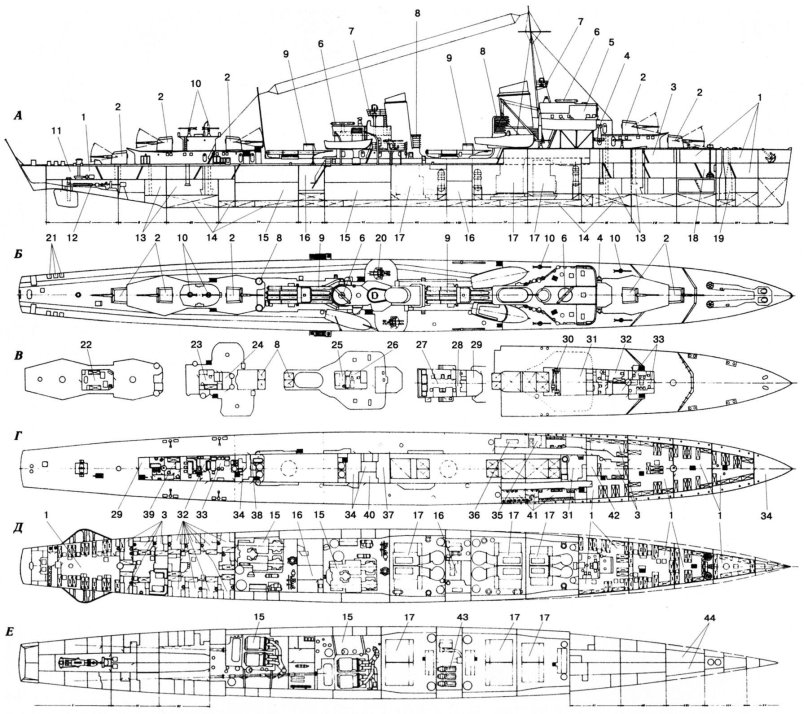 Эскадренные миноносцы Италии чертежи