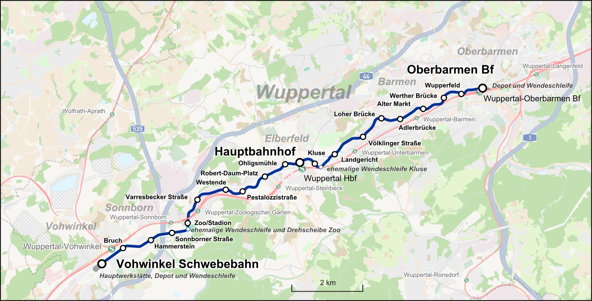 Вуппертальская подвесная железная дорога схема