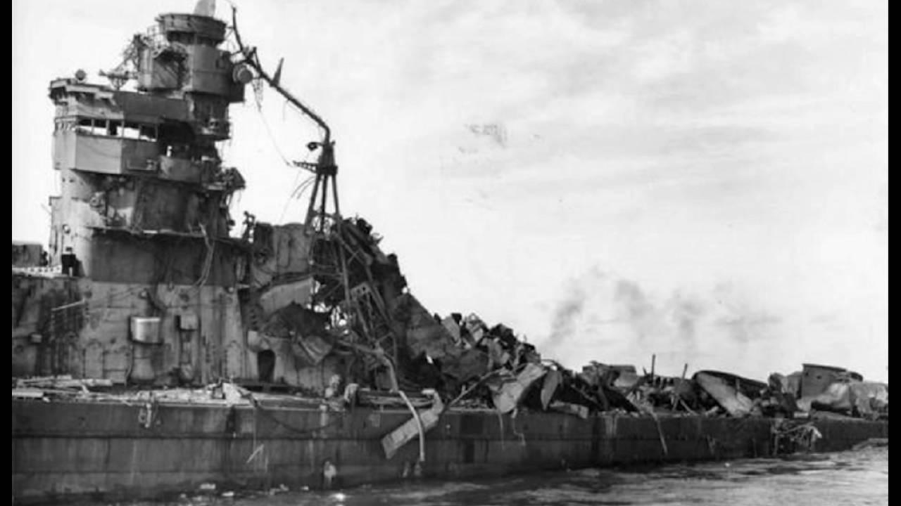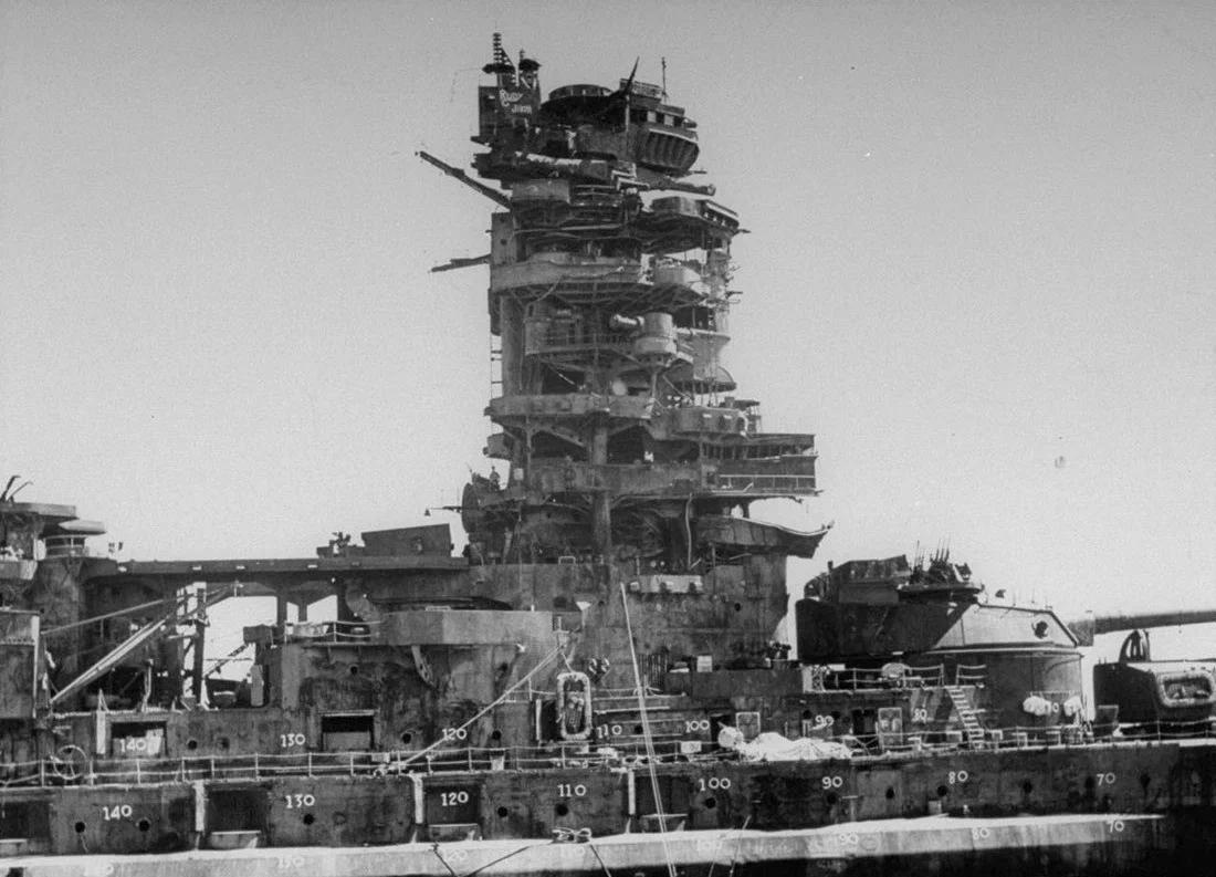 Линкор Нагато после атомного взрыва
