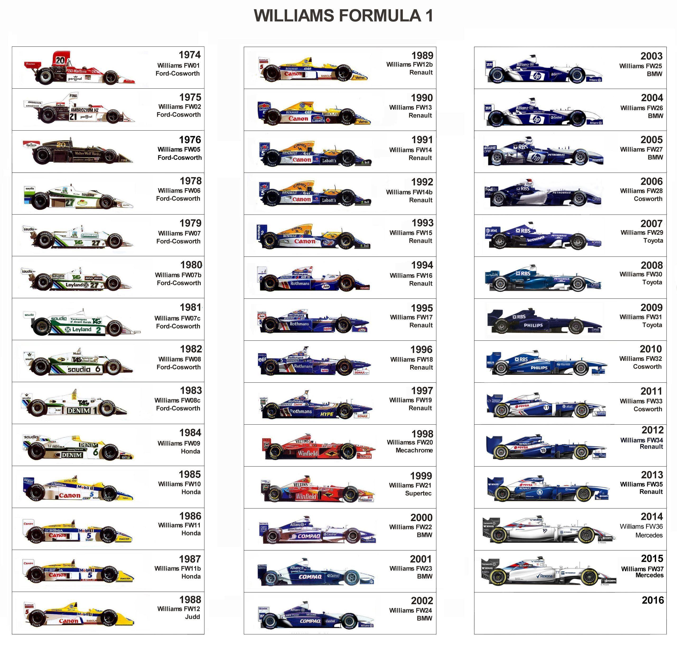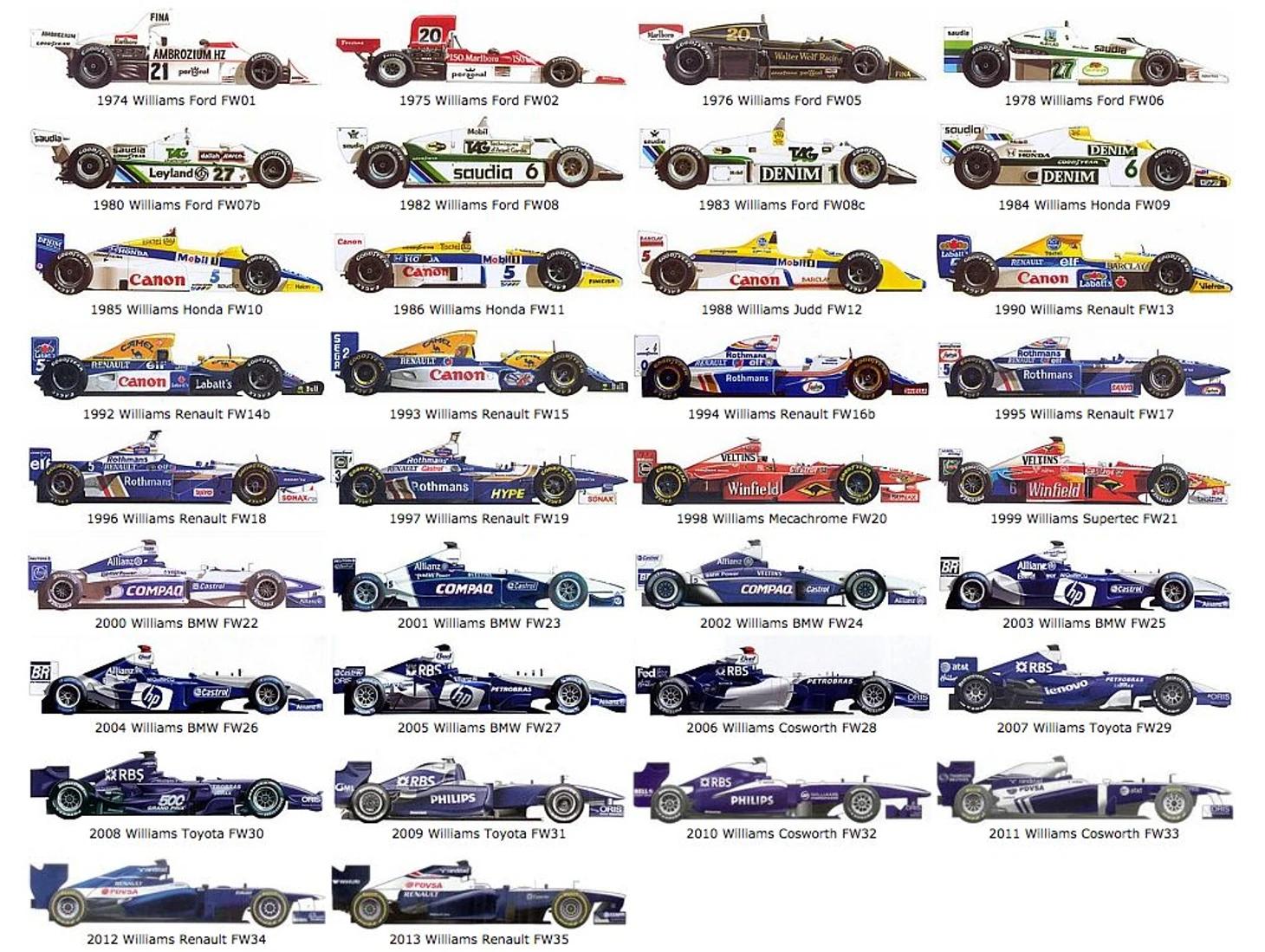 Эволюция болидов формулы 1 Вильямс