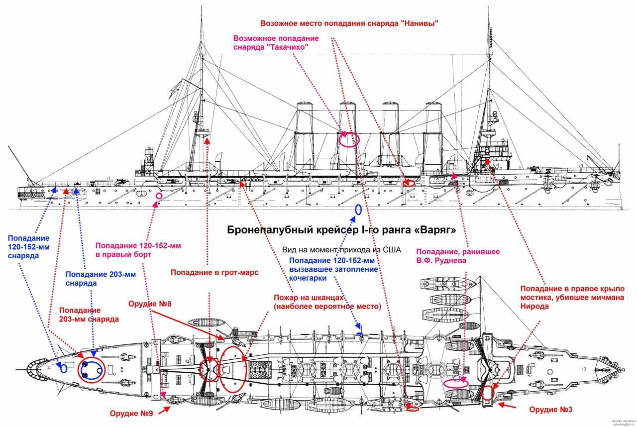 Схема вооружения крейсера Варяг