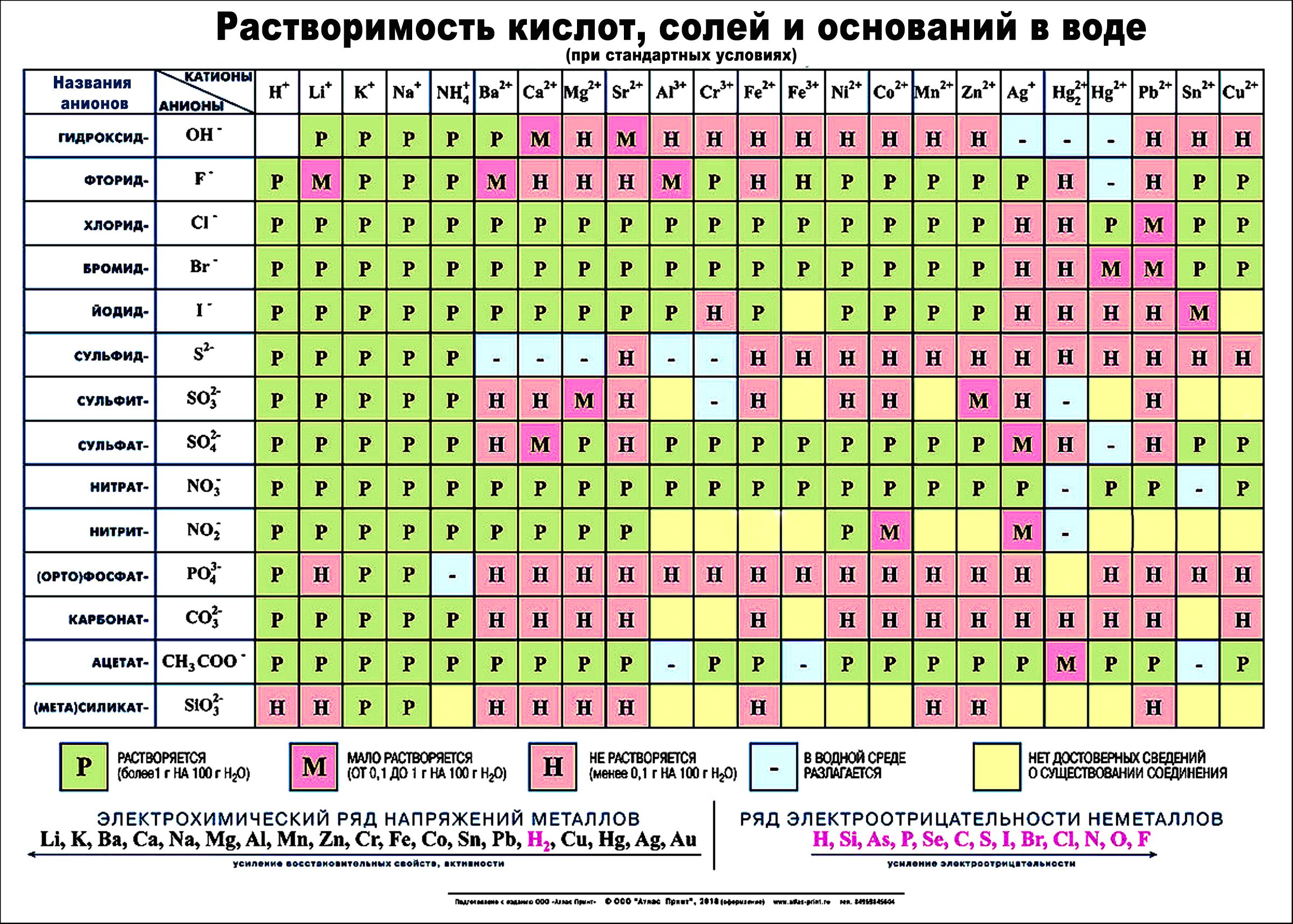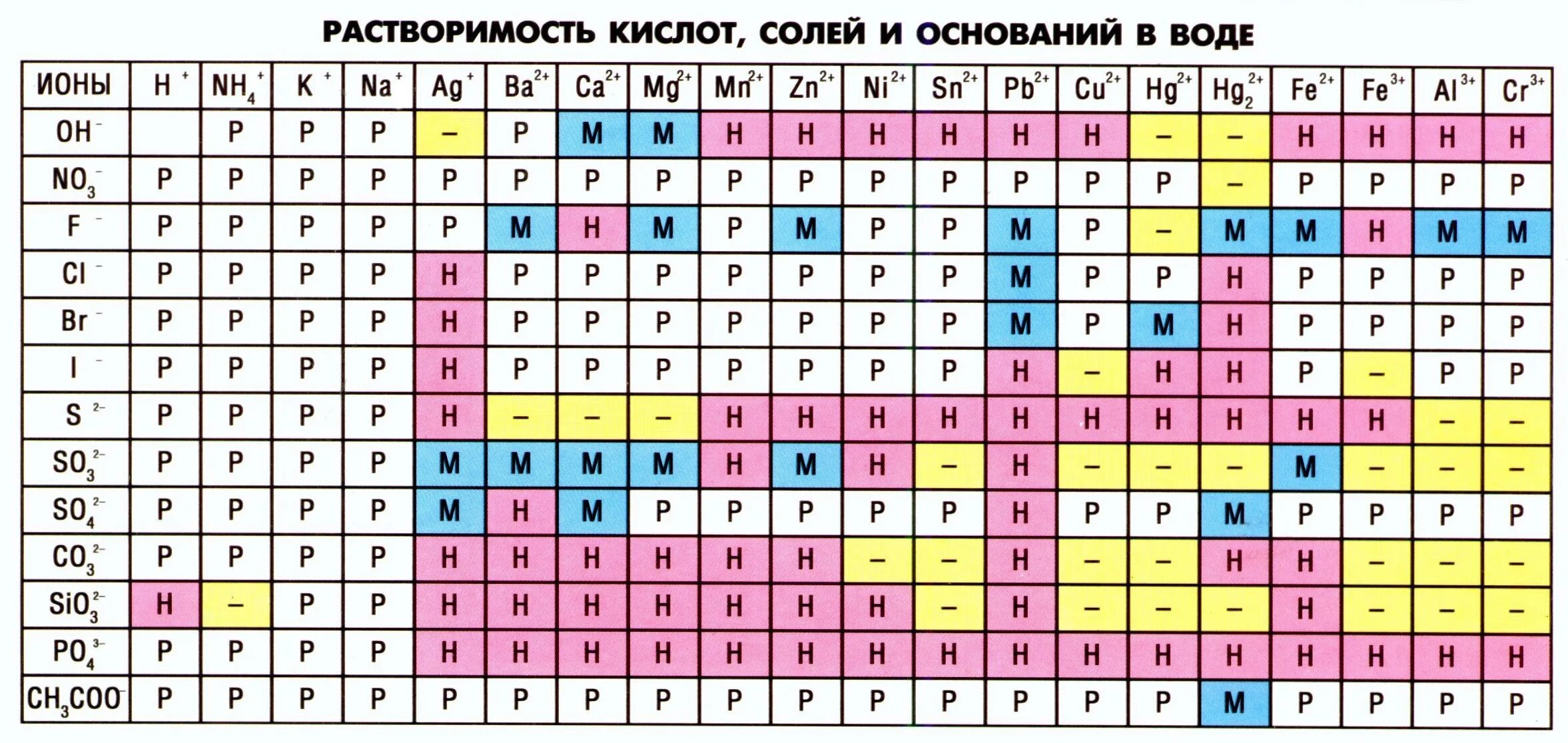 Таблица растворимости гидроксидов и солей в воде