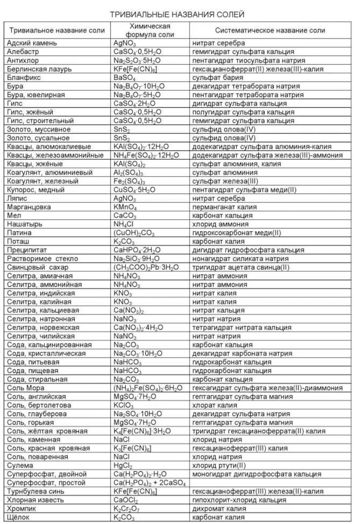Тривиальные названия неорганических солей