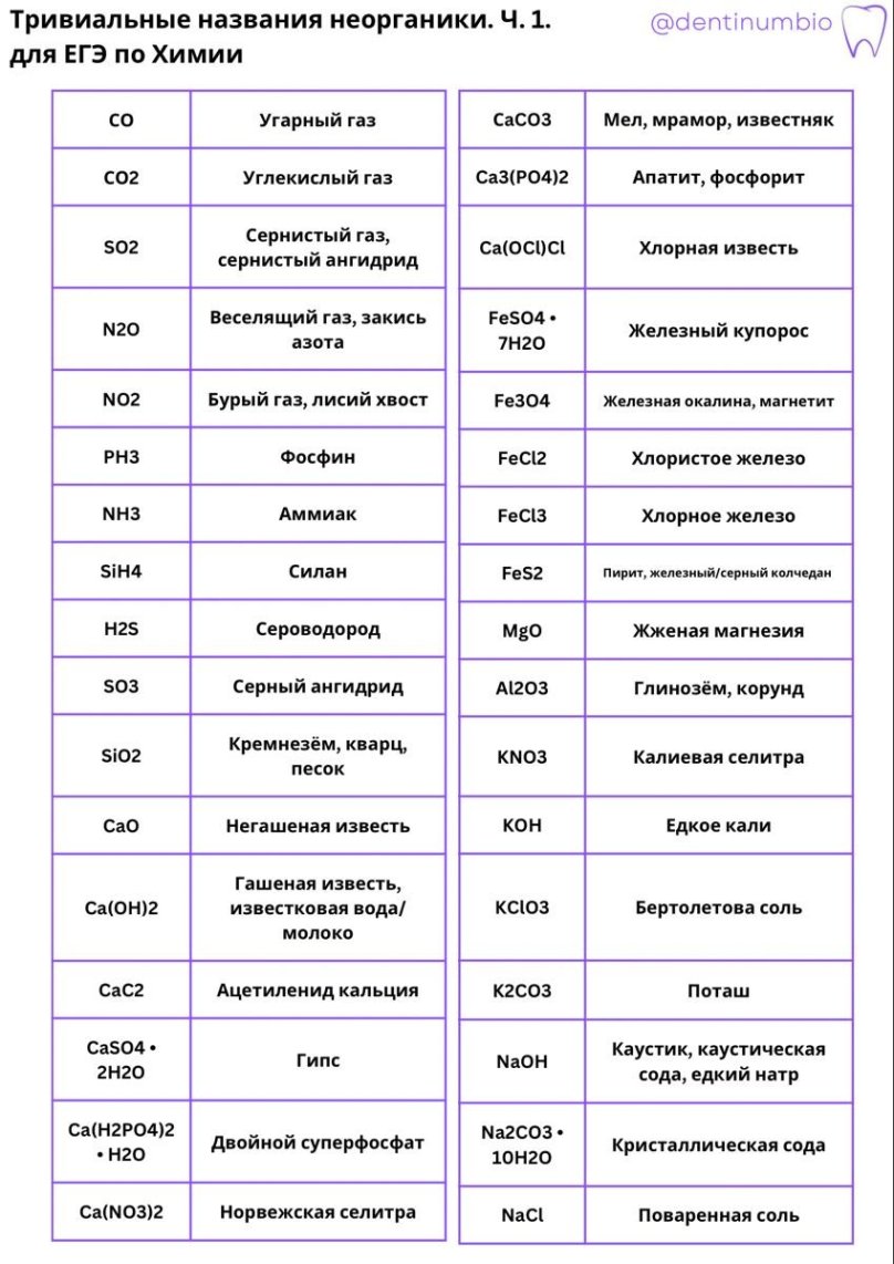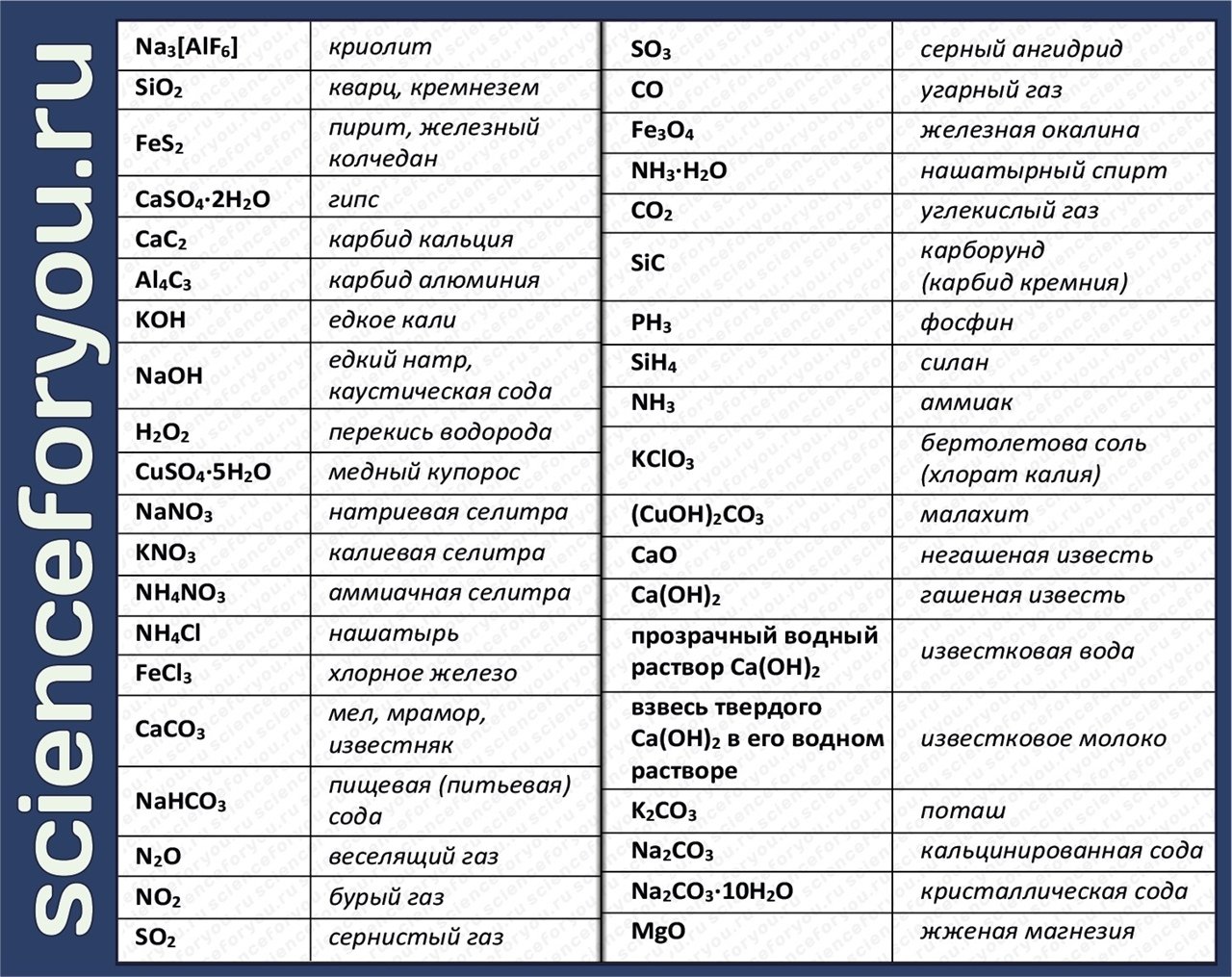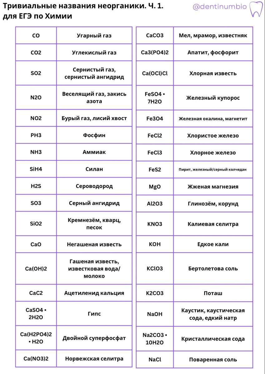Названия веществ в химии таблица